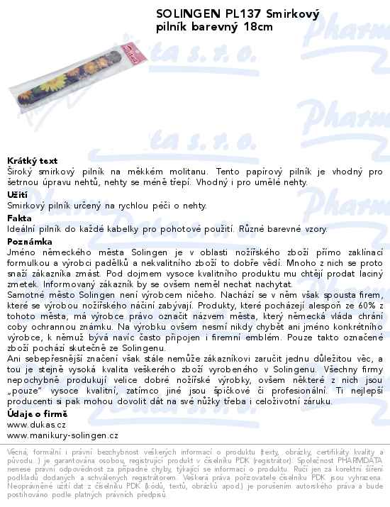 SOLINGEN PL137 Smirkový pilník barevný 18cm
