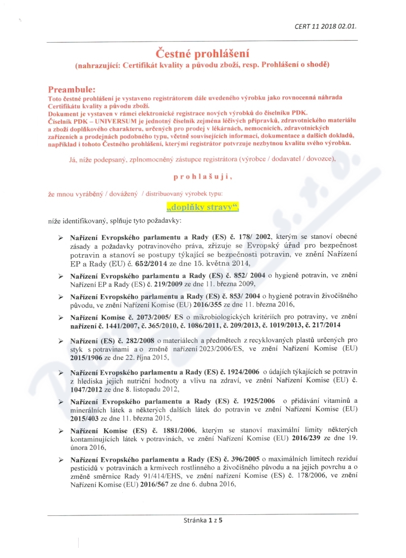 5 strany čestného prohlášení: strana 1, strana 2, strana 3, strana 4, strana 5,