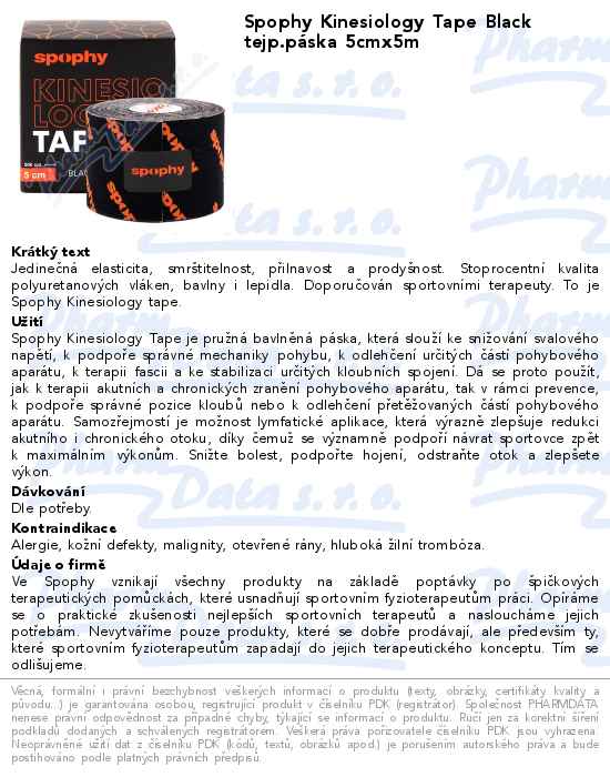 Spophy Kinesiology Tape Black tejp.páska 5cmx5m
