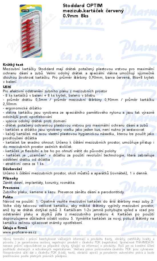 Stoddard OPTIM mezizub.kartáček červený 0.9mm 8ks
