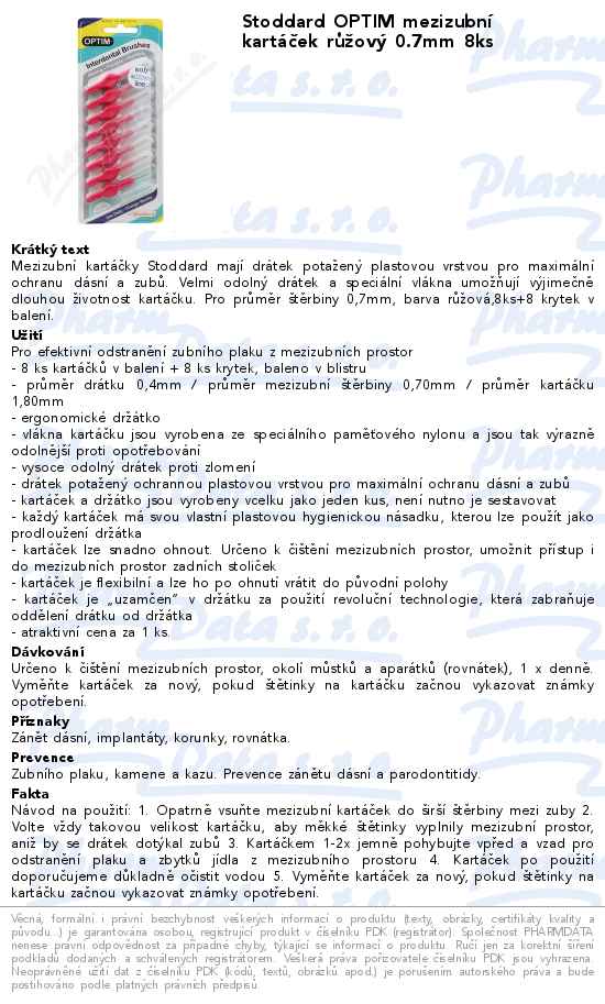 Stoddard OPTIM mezizubní kartáček růžový 0.7mm 8ks