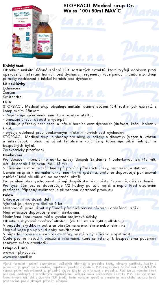 STOPBACIL Medical sirup Dr. Weiss 100+50ml NAVÍC