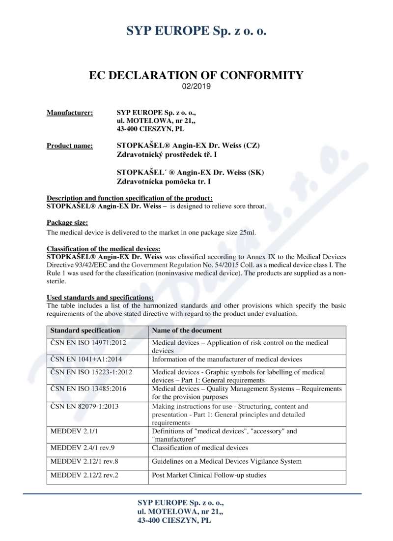 2 strany prohlášení o shodě: strana 1, strana 2,