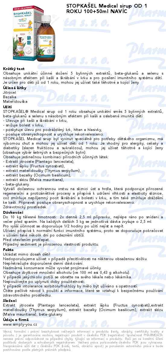 STOPKAŠEL Medical sirup OD 1 ROKU 100+50ml NAVÍC