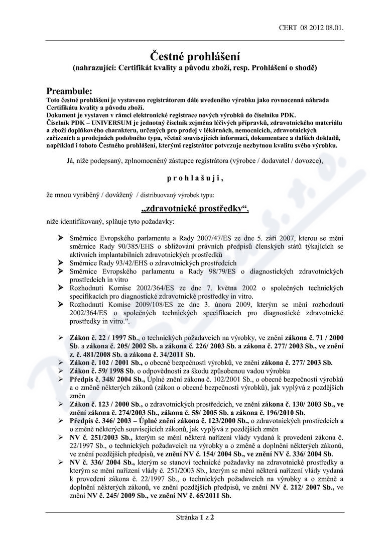 2 strany čestného prohlášení: strana 1, strana 2,