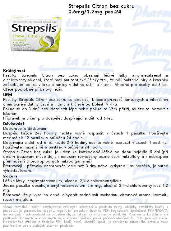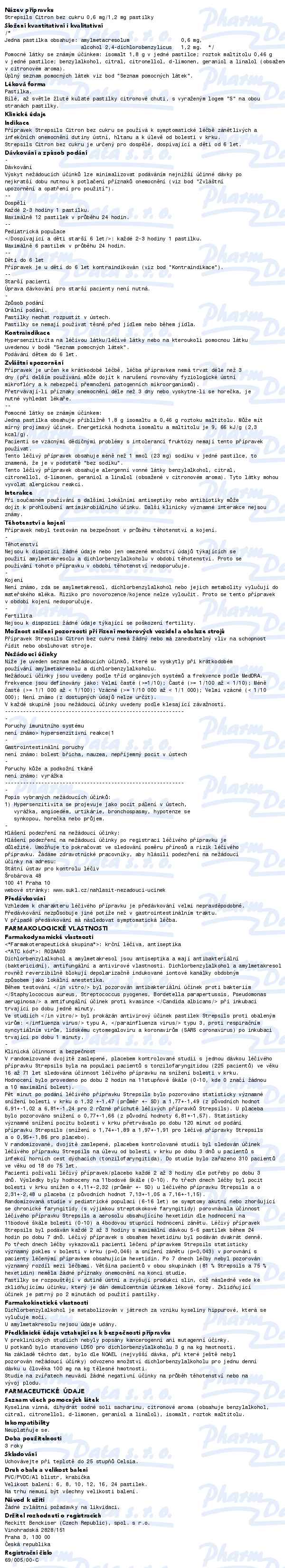 Strepsils Citron bez cukru 0.6mg/1.2mg pas.24