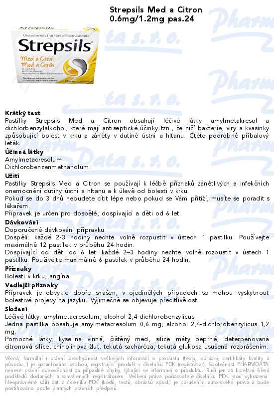 Strepsils Med a Citron 0.6mg/1.2mg pas.24