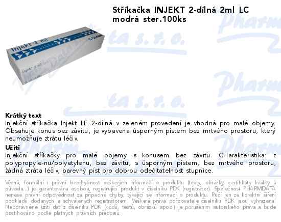 Stříkačka INJEKT 2-dílná 2ml LC modrá ster.100ks