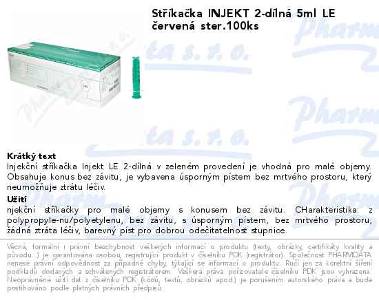 Stříkačka INJEKT 2-dílná 5ml LE červená ster.100ks