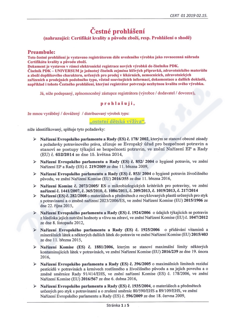5 strany čestného prohlášení: strana 1, strana 2, strana 3, strana 4, strana 5,