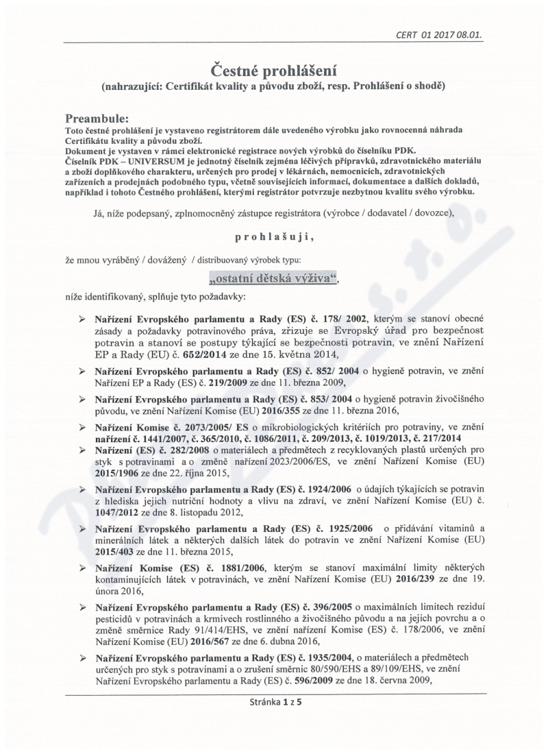5 strany čestného prohlášení: strana 1, strana 2, strana 3, strana 4, strana 5,