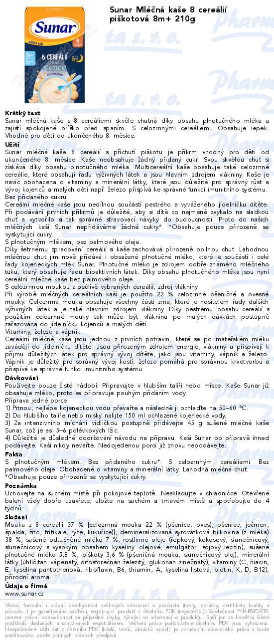 Sunar Mléčná kaše 8 cereálií piškotová 8m+ 210g
