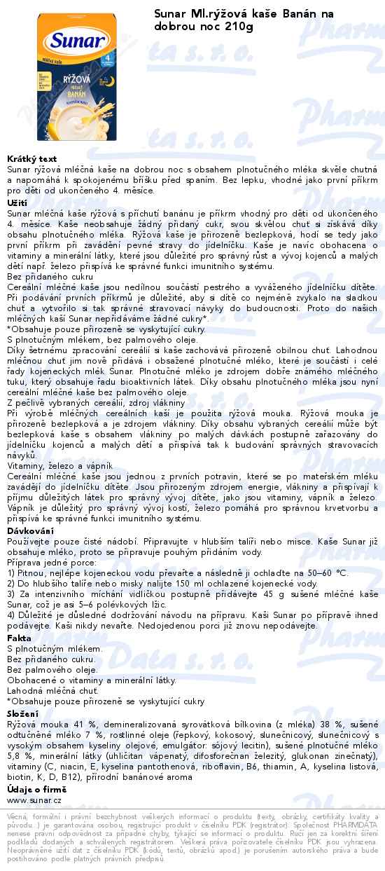 Sunar Ml.rýžová kaše Banán na dobrou noc 210g