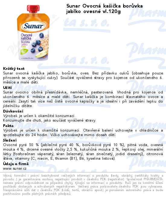 Sunar Ovocná kašička borůvka jablko ovesné vl.120g