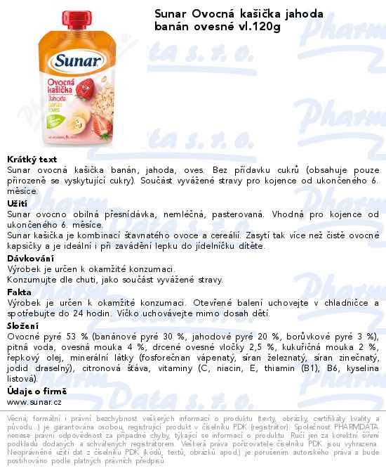 Sunar Ovocná kašička jahoda banán ovesné vl.120g