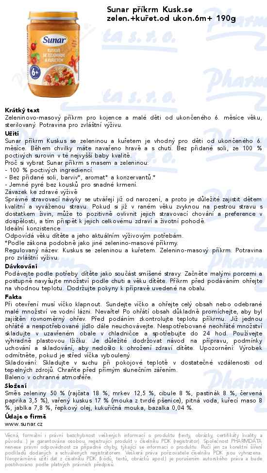 Sunar příkrm Kusk.se zelen.+kuřet.od ukon.6m+ 190g