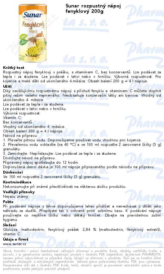 Sunar rozpustný nápoj fenyklový 200g