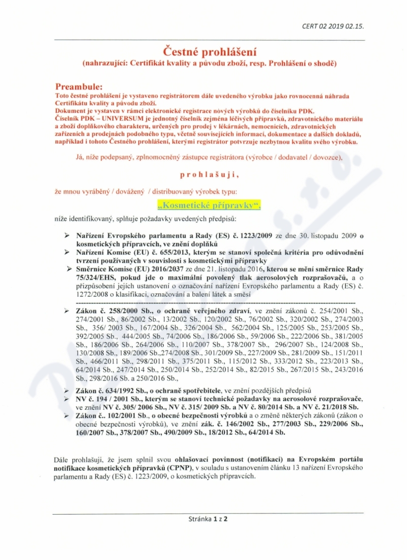 2 strany čestného prohlášení: strana 1, strana 2,