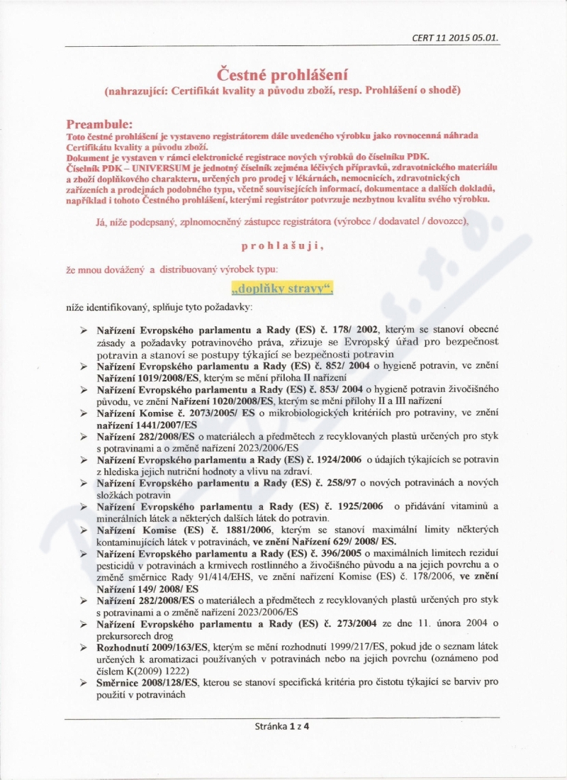 4 strany čestného prohlášení: strana 1, strana 2, strana 3, strana 4,