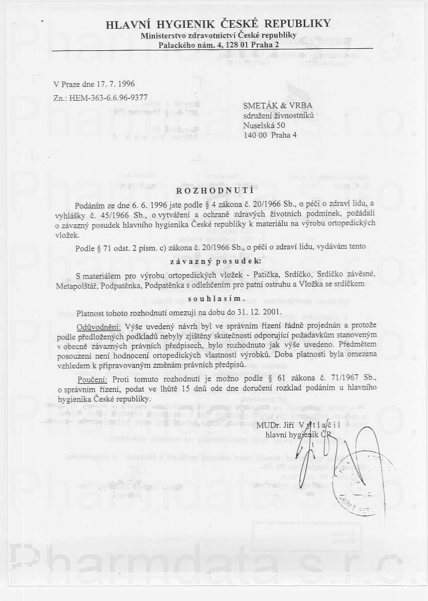 osvědčení hlavního hygienika
