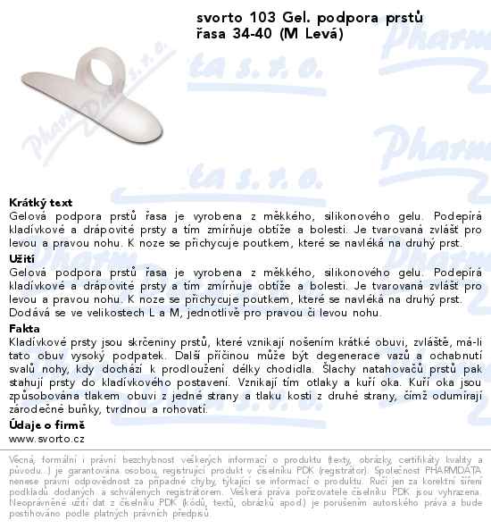 svorto 103 Gel. podpora prstů řasa 34-40 (M Levá)