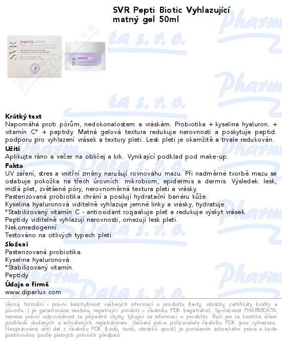 SVR Pepti Biotic Vyhlazující matný gel 50ml