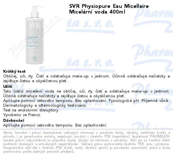 SVR Physiopure Eau Micellaire Micelární voda 400ml