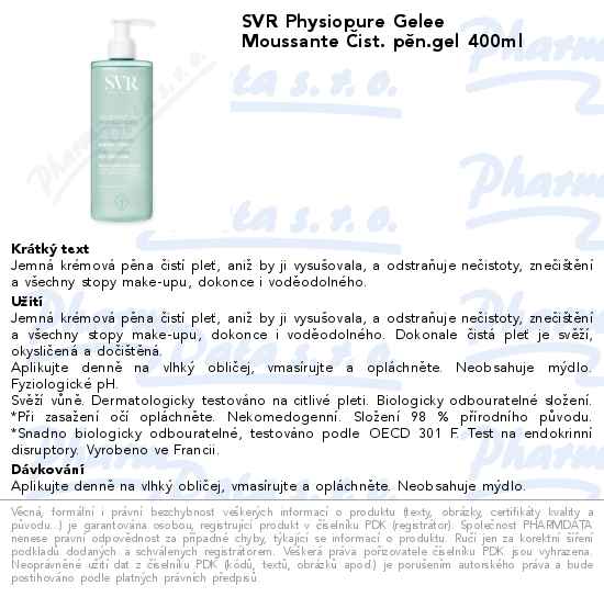 SVR Physiopure Gelee Moussante Čist. pěn.gel 400ml