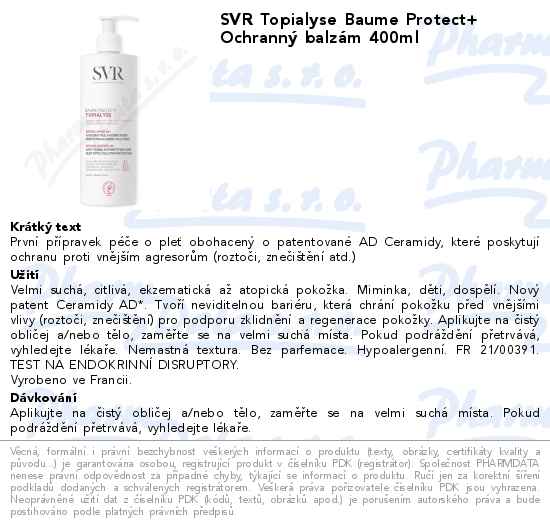 SVR Topialyse Baume Protect+ Ochranný balzám 400ml