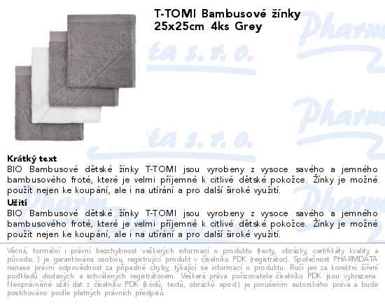 T-TOMI Bambusové žínky 25x25cm 4ks Grey
