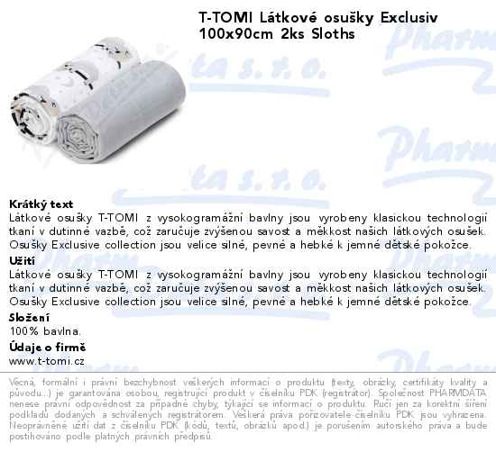 T-TOMI Látkové osušky Exclusiv 100x90cm 2ks Sloths