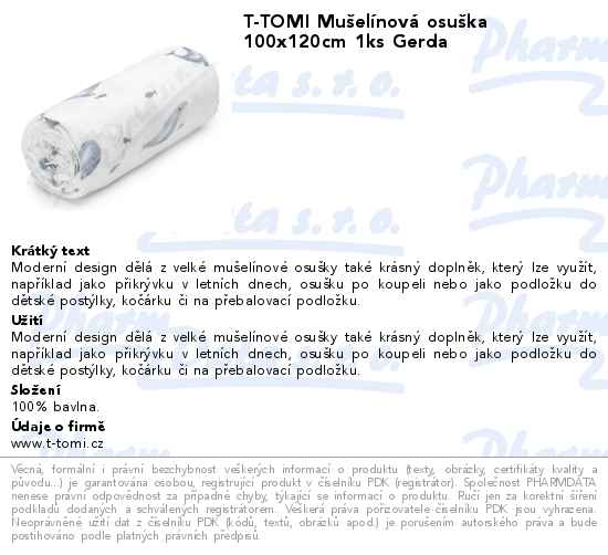 T-TOMI Mušelínová osuška 100x120cm 1ks Gerda