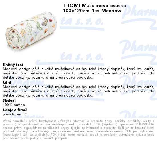 T-TOMI Mušelínová osuška 100x120cm 1ks Meadow