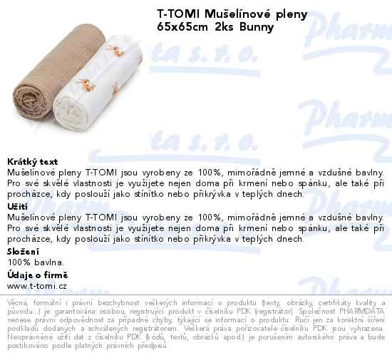 T-TOMI Mušelínové pleny 65x65cm 2ks Bunny