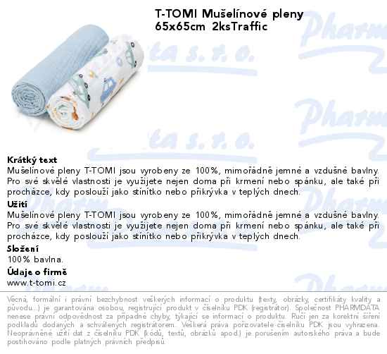 T-TOMI Mušelínové pleny 65x65cm 2ksTraffic