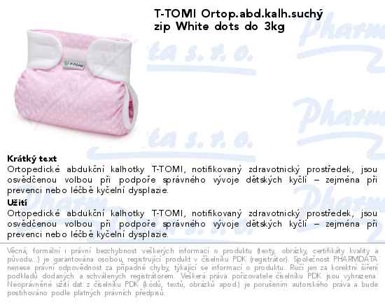 T-TOMI Ortop.abd.kalh.suchý zip White dots do 3kg