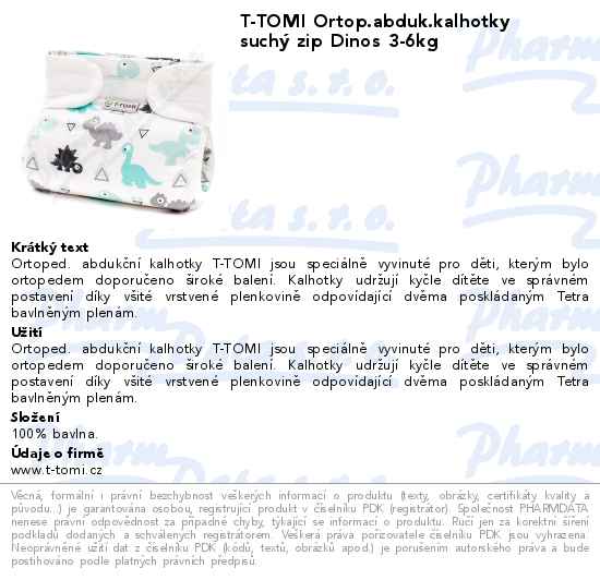 T-TOMI Ortop.abduk.kalhotky suchý zip Dinos 3-6kg