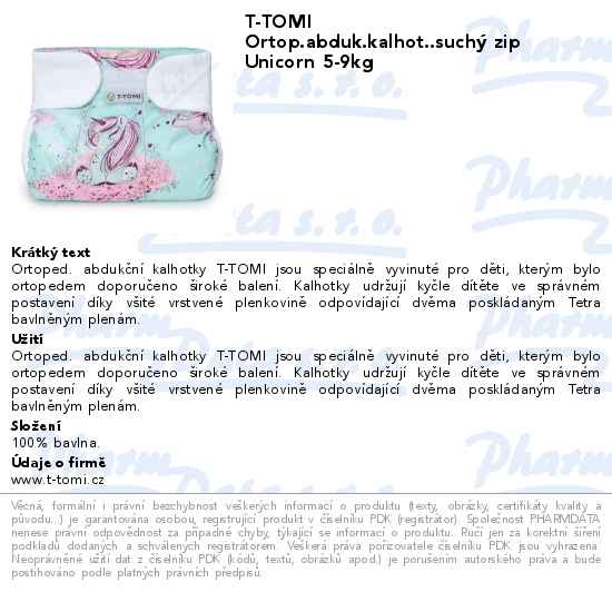 T-TOMI Ortop.abduk.kalhot..suchý zip Unicorn 5-9kg