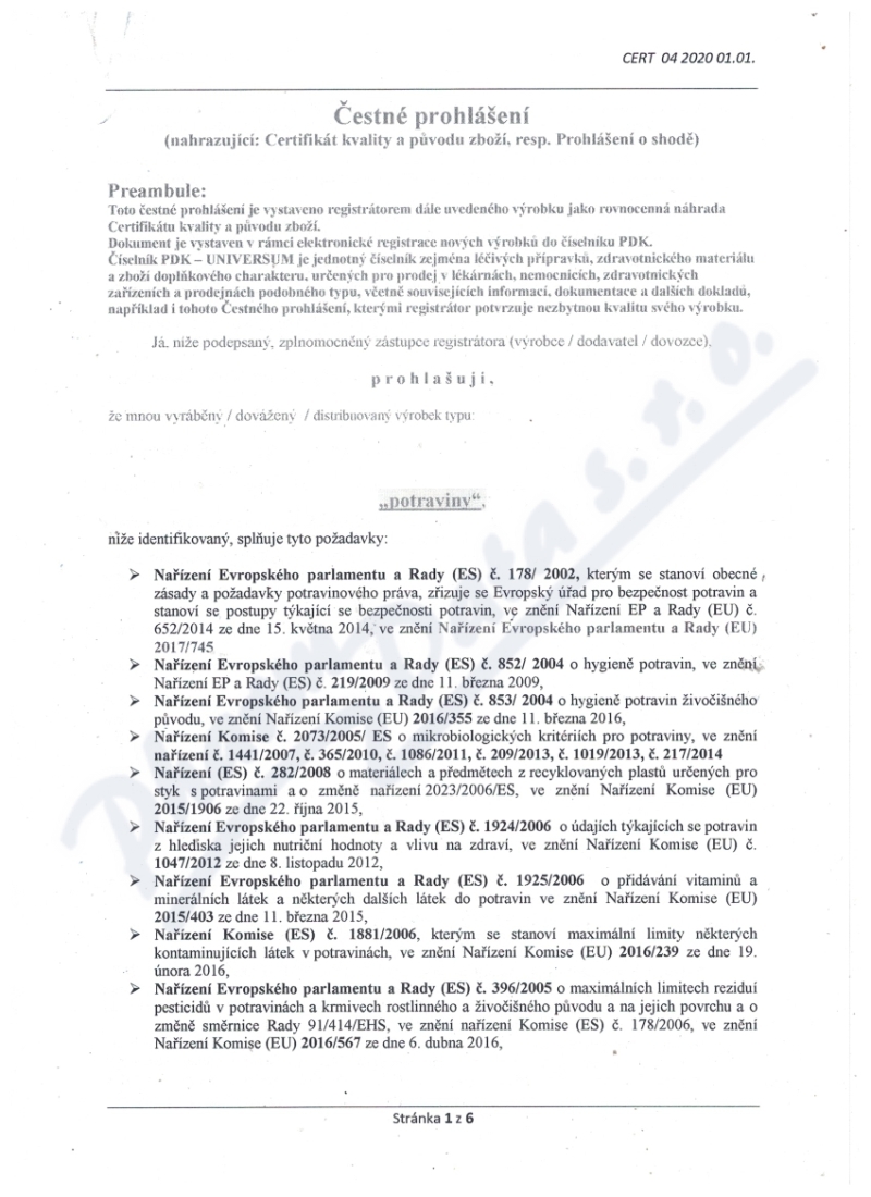 6 strany čestného prohlášení: strana 1, strana 2, strana 3, strana 4, strana 5, strana 6,