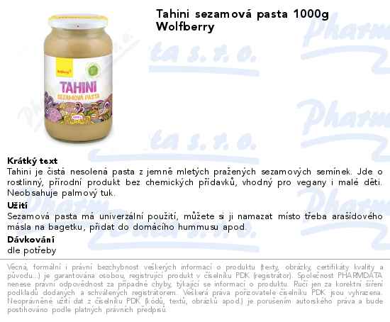 Tahini sezamová pasta 1000g Wolfberry