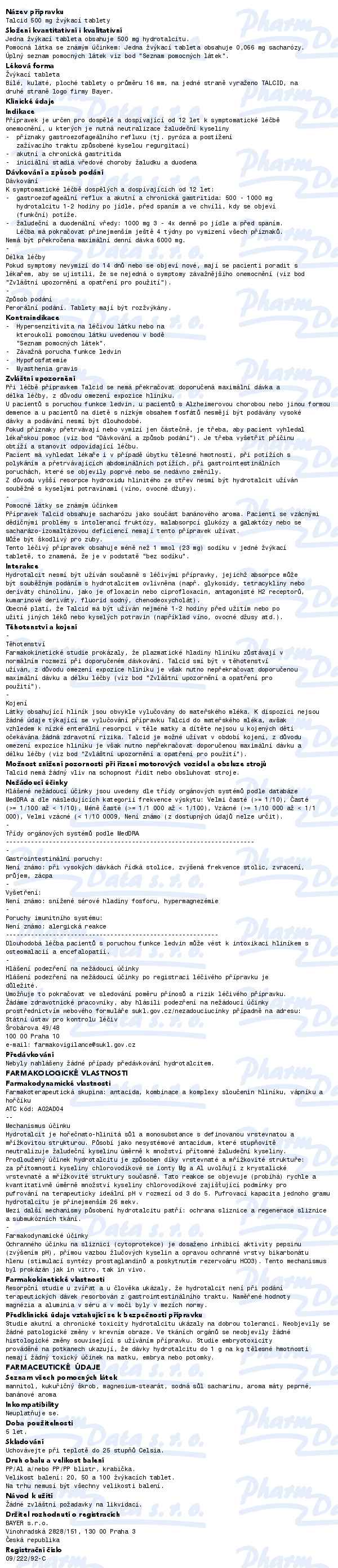 Obsahuje: HYDROTALCIT