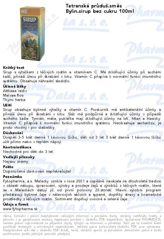 Tatranská průduš.směs Bylin.sirup bez cukru 100ml