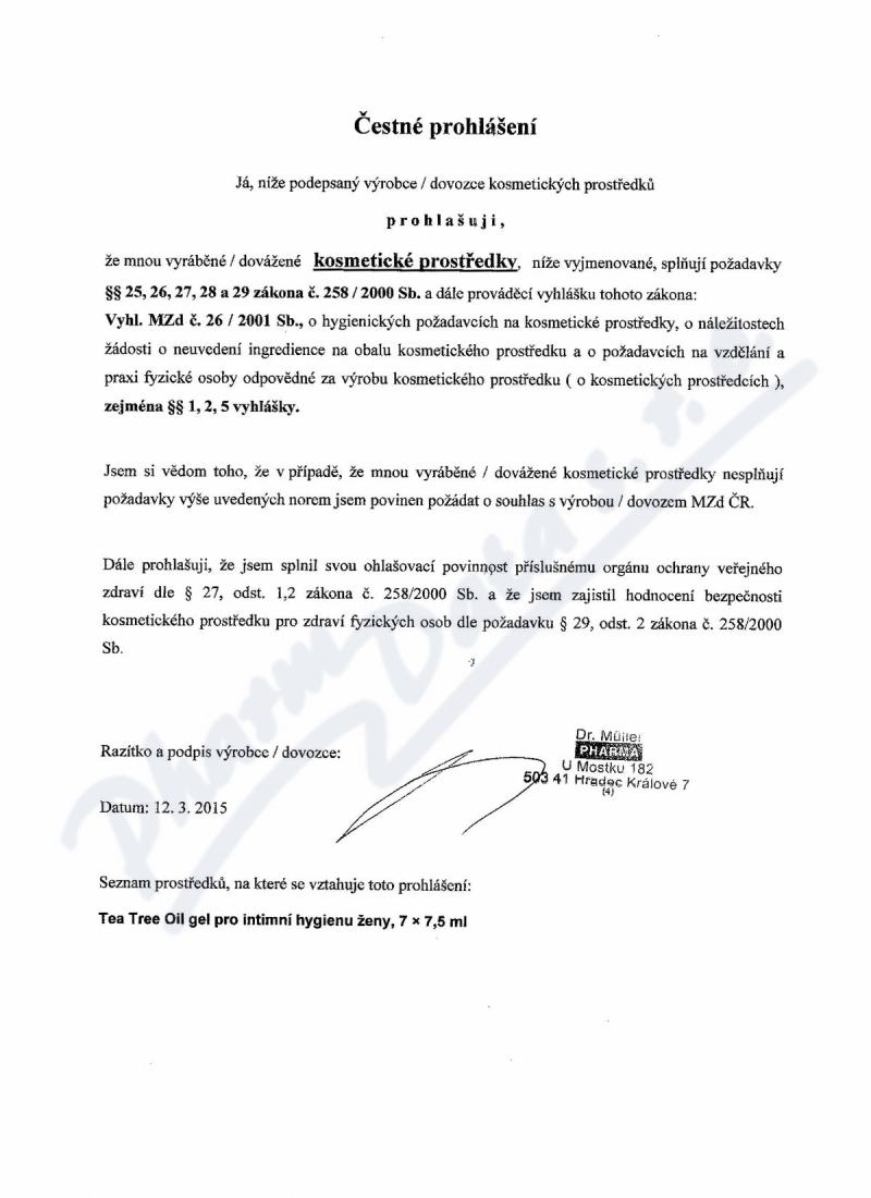 Výrobce: Dr. Müller Pharma s.r.o., Hradec Králové