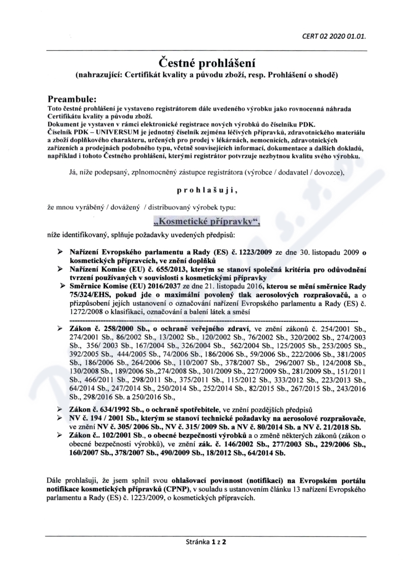 2 strany čestného prohlášení: strana 1, strana 2,