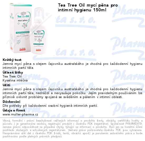 Tea Tree Oil mycí pěna pro intimní hygienu 150ml