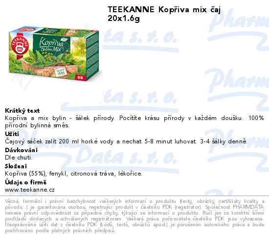 TEEKANNE Kopřiva mix čaj 20x1.6g