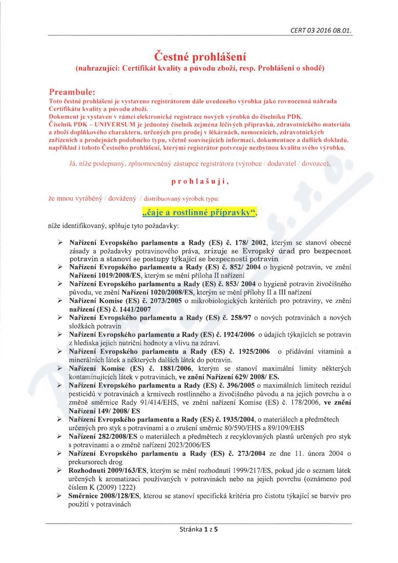 5 strany čestného prohlášení: strana 1, strana 2, strana 3, strana 4, strana 5,