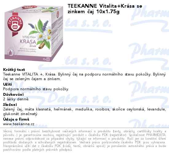 TEEKANNE Vitalita+Krása se zinkem čaj 10x1.75g