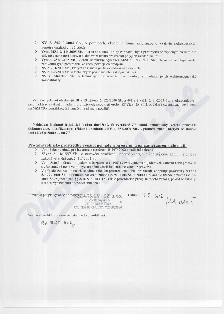 2 strany prohlášení o shodě: strana 1, strana 2,