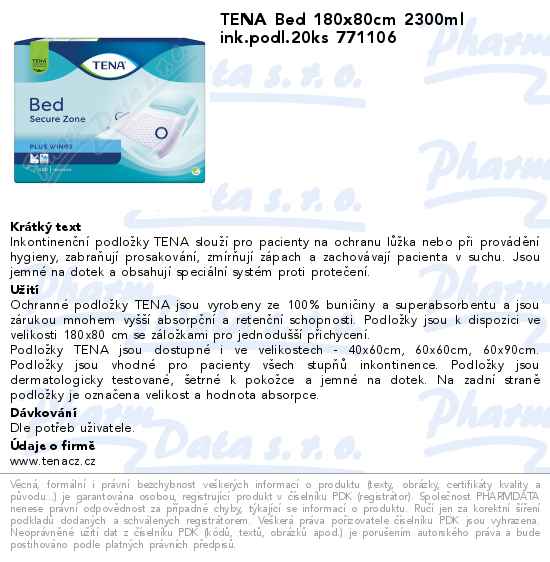 TENA Bed 180x80cm 2300ml ink.podl.20ks 771106
